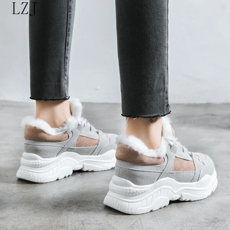 .Pictures of 2019 Shoes Winter Warm Platform Woman Snow Boots Plush Female Casual Sneakers Faux Suede Leather Female Snowboots Warm Shoes Fur