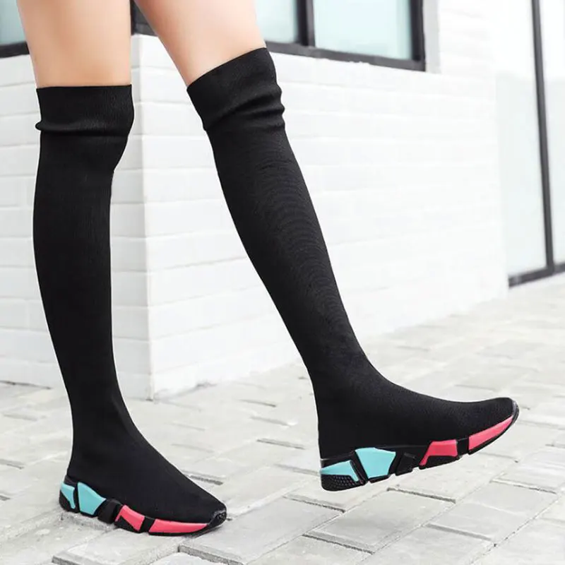 If You want to buy for thigh high boots, then Elastic Over The Knee Boots Women Socks Black Boots Long Thigh High Slim Knitting Boots Sneakers Platform Designer Long Shoes is possible make you love