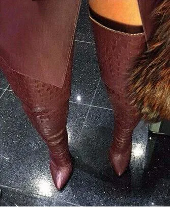 .Pictures of Winter Women Alligator Sexy Over The Knee High Boots Crocodile Thigh High Booties Female Fashion High Heel Shoes Woman 2017 Boot