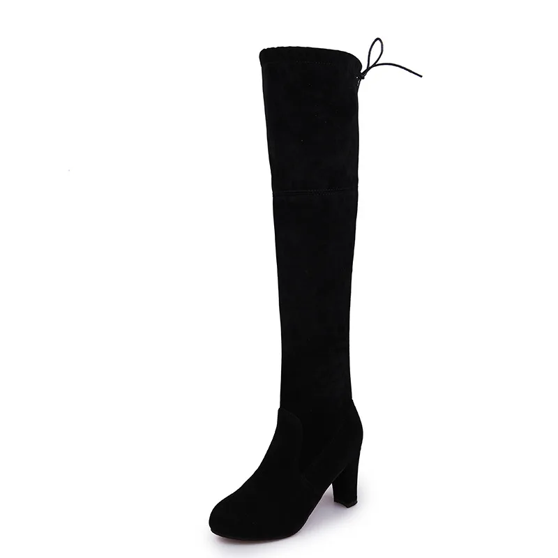 .Images for Women boot Faux Suede Women Over The Knee Boots Lace Up Sexy High Heels Shoes Woman Female Slim Thigh High Boots size 35-43